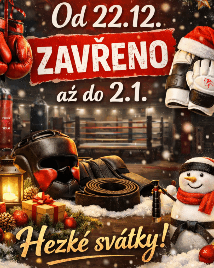 Od 22. 12. máme zavřeno až na výjimku BJJ a znovu se na vás těšíme od 5. 1. 💪